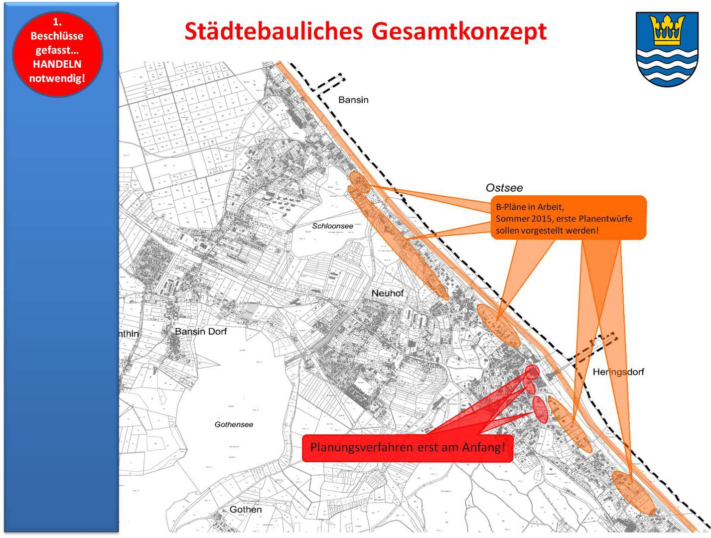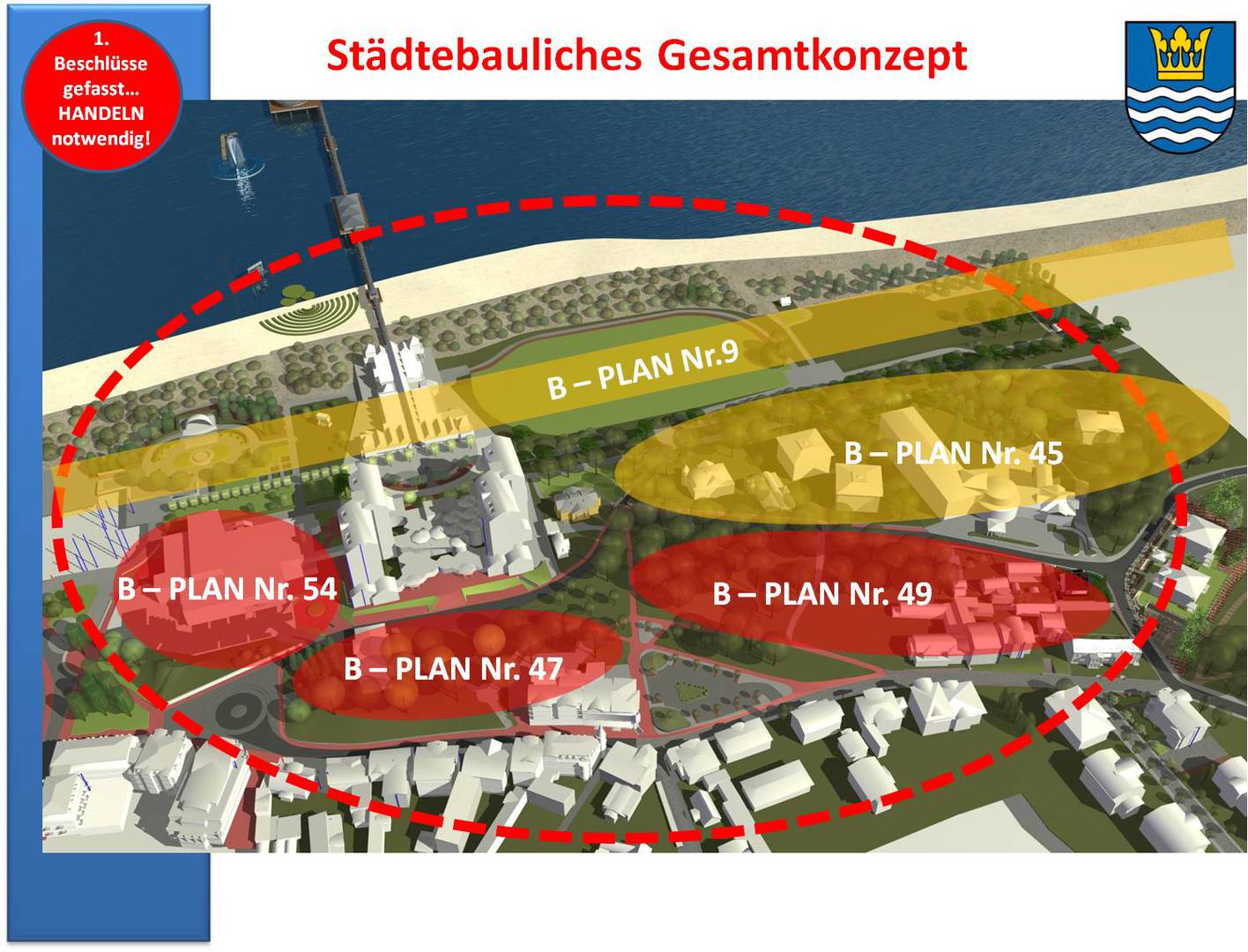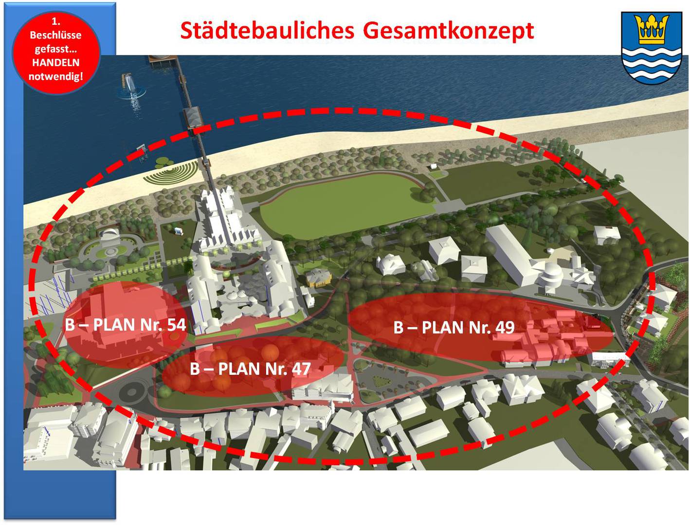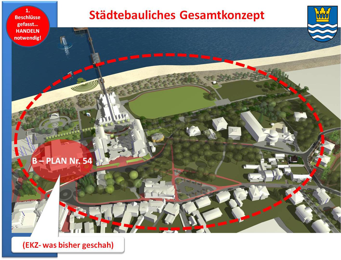Bevor ein auserwähltes Planungsbüro innerhalb des ihm zugewiesenen Plangebiets "losplant", ist natürlich ein Gesamtkonzept an den Anfang zu stellen, wobei es notwendig ist, einen klaren Blick in die Zukunft zu entwickeln.