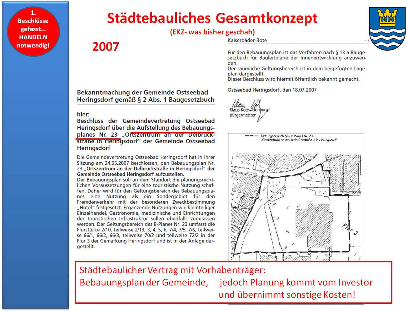 Die Gemeindevertretung unserer Gemeinde hat schon vor geraumer Zeit Aufstellungsbeschlüsse für Bebauungspläne im Zentrum von Heringsdorf gefasst.