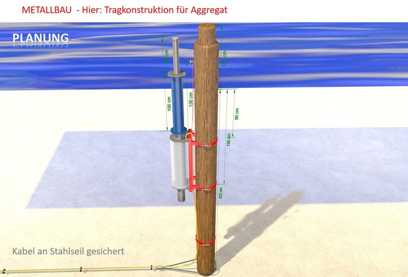 im Meer montieren zu können. Das hat auch funktioniert, jedoch war die Montage im kalten Frühjahrswasser und auch die Demontage im Herbst ein Kraftakt :-(.