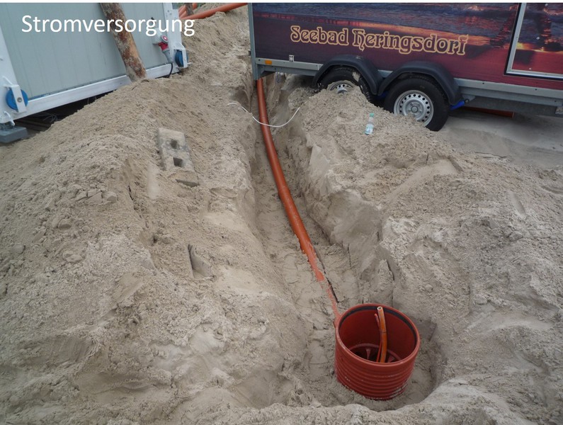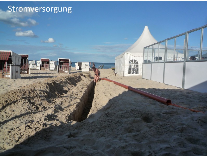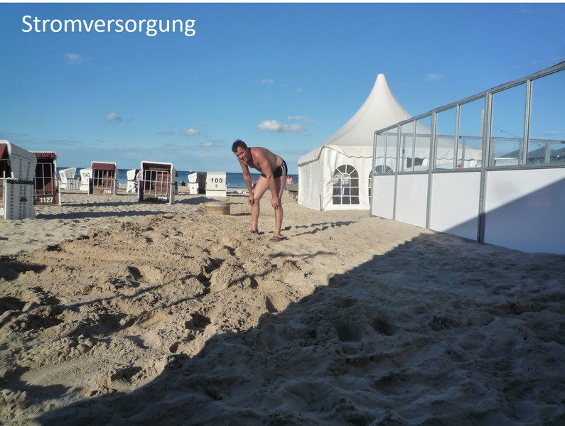 Hier in Heringsdorf haben wir an den alten Brückenpfählen in ausreichender Distanz zum Publikum die Möglichkeit die Technik relativ sturmsicher