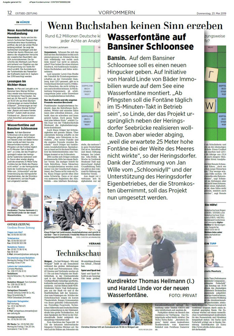 Eine Fontäne in der Ostsee hätte absolutes Alleinstellungsmerkmal, denn wie will ein Seebad das umsetzen wollen?