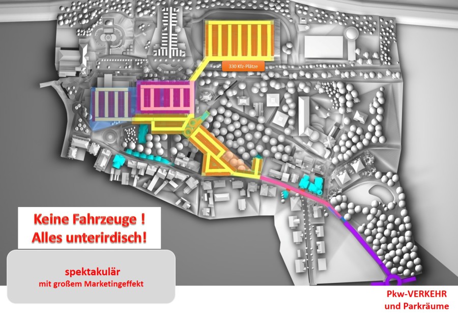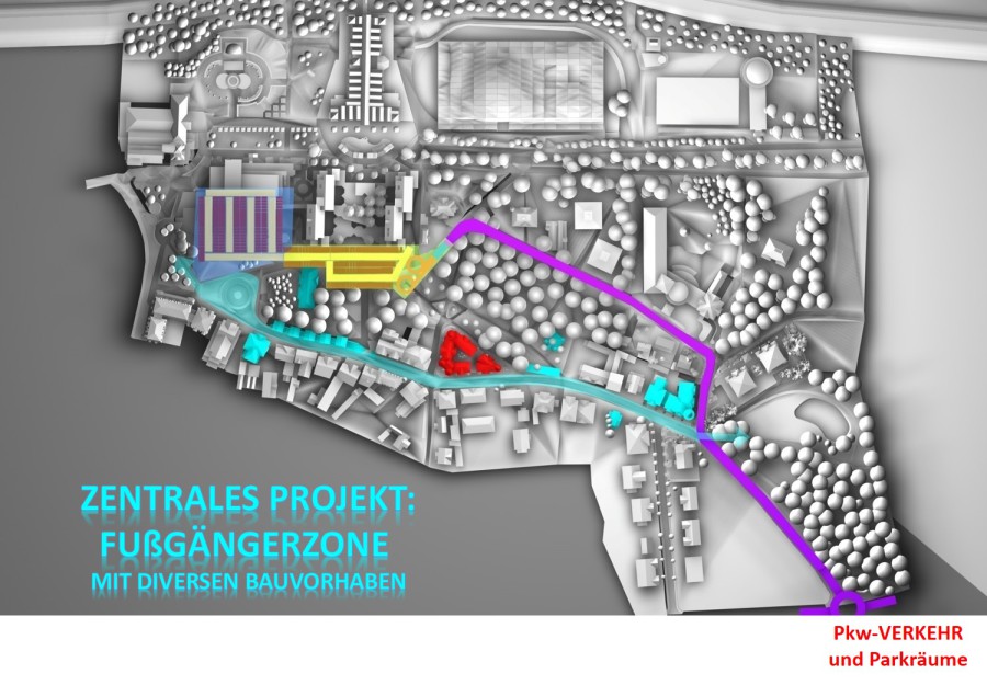 Ziel ist es, das Konzept zu optimieren und es dann als Rahmenplan oder Ähnliches als Planungsgrundlage für weitere Projekte (EKZ, Tiefgaragen, etc...) zu beschliessen.